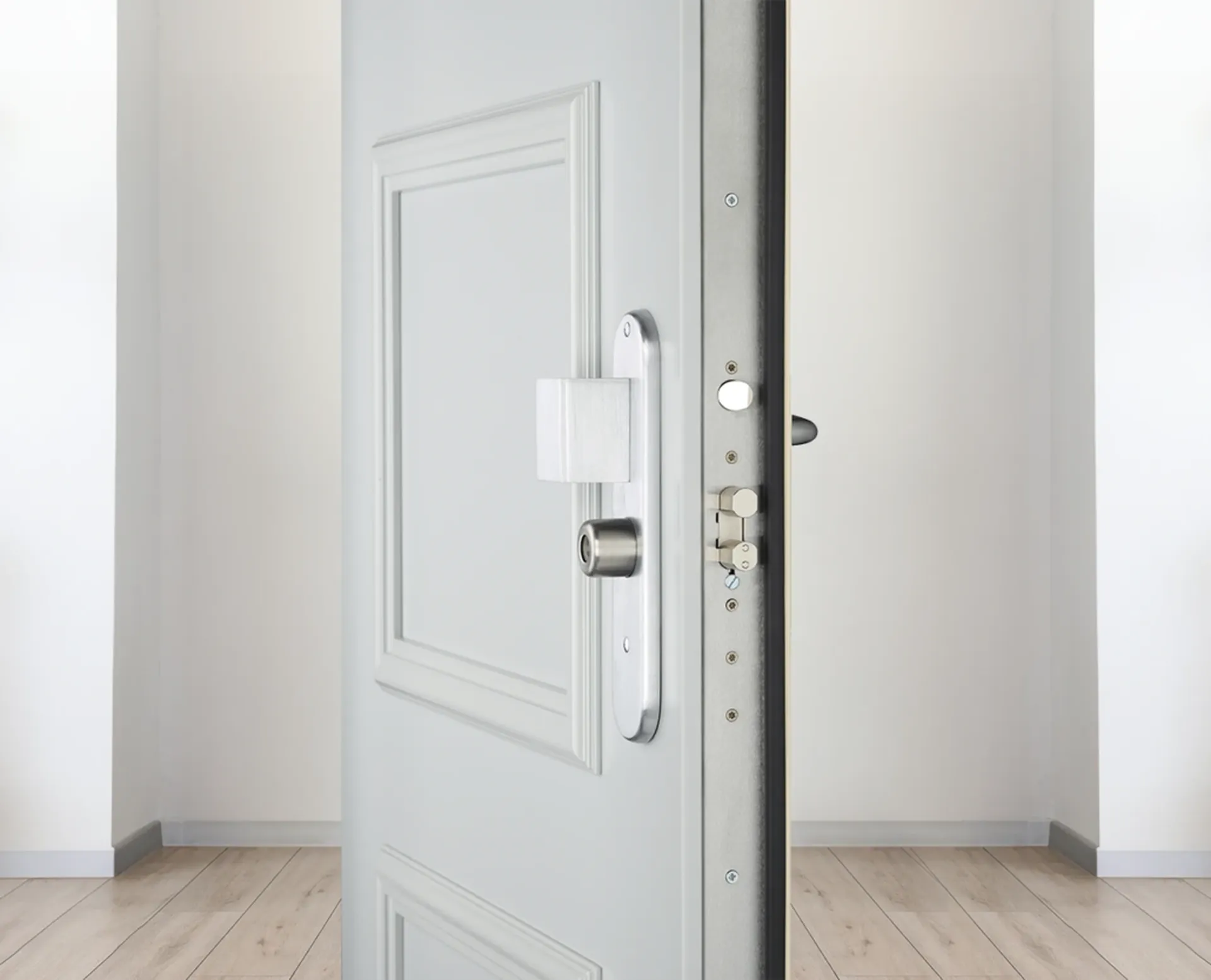 Dotée du cylindre 787 M, cette porte blindée est conçue pour résister aux tentatives de crochetage. Son revêtement en acier traité améliore sa résistance aux attaques par sciage, perçage, et arrachement.