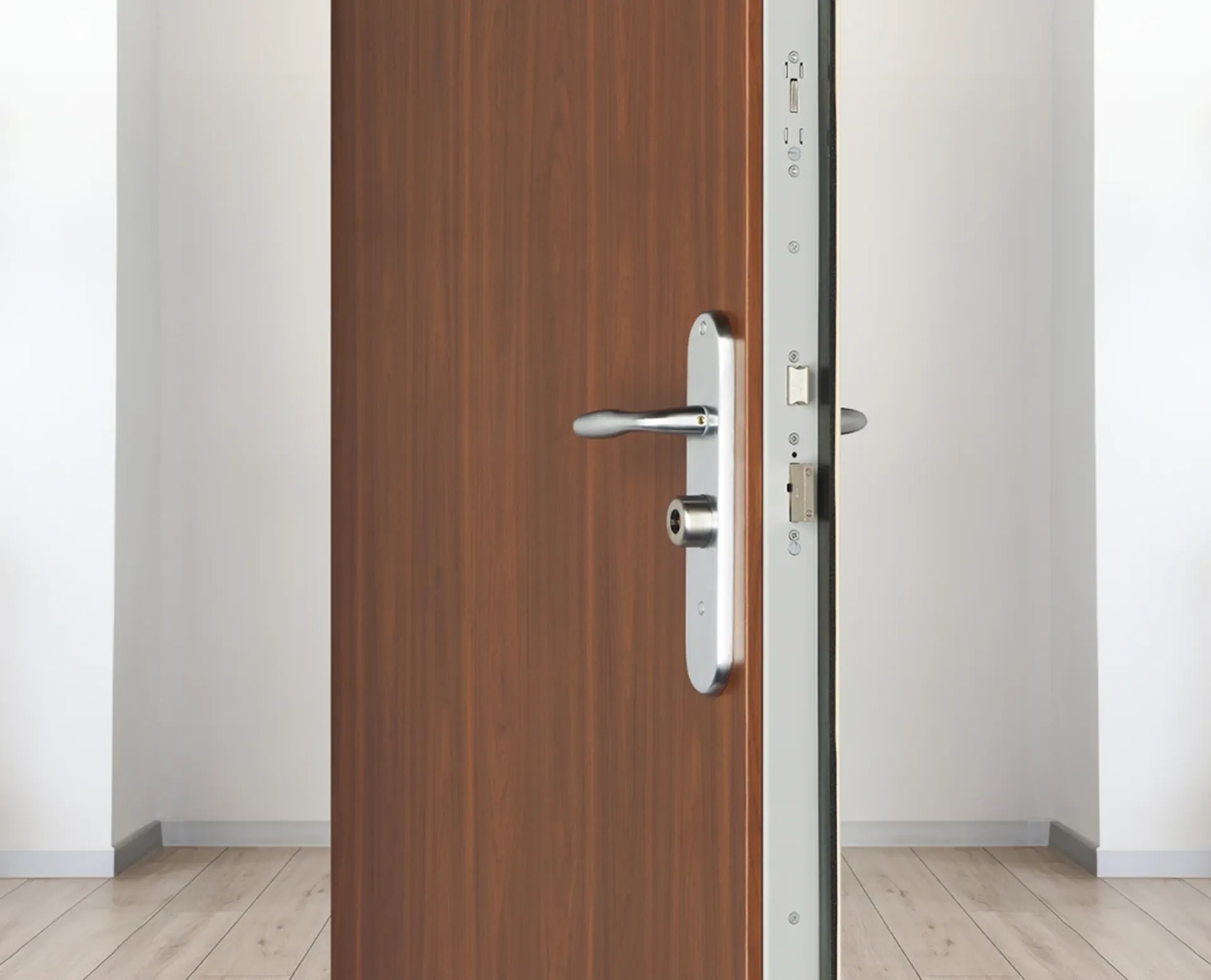 Équipée du cylindre 787 M, cette porte blindée est conçue pour résister aux tentatives de crochetage. Sa protection en acier traité améliore sa résistance contre le sciage, le perçage, et l'arrachement.